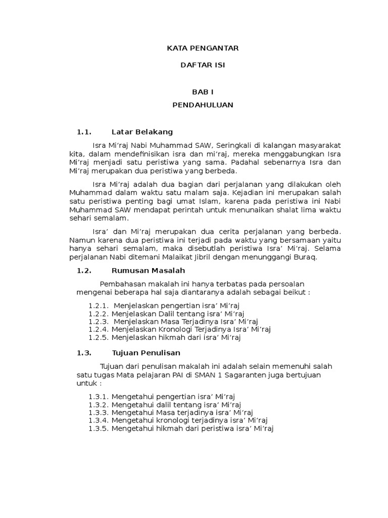 Makalah tentang isra mi raj. Pembahasan makalah ini hanya terbatas pada persoalan mengenai sejarah nabi muhammad saw lebih khususnya dalam hal sejarah isra mi raj nabi muhammad s aw yaitu tentang pengertiannya masa terjadinya kronologinya konteks situasi terjadinya tanggapan orang orang kafir qurays tentang kejadian isra mi raj hikmah yang bisa diambil dari peristiwa isra mi raj dan masalah masalah. Jika dalam versi indonesia embel embel ceritanya adalah tentang kisah isra mi raj di atas maka dalam forum berbahasa arab itu cerita pengiringnya berbeda. Tanggapan orang orang kafir qurays tentang kejadian isra mi raj hikmah yang bisa diambil dari peristiwa isra mi raj dan masalah masalah lain yang berkaitan dengan isra mi raj nabi muhammad saw.