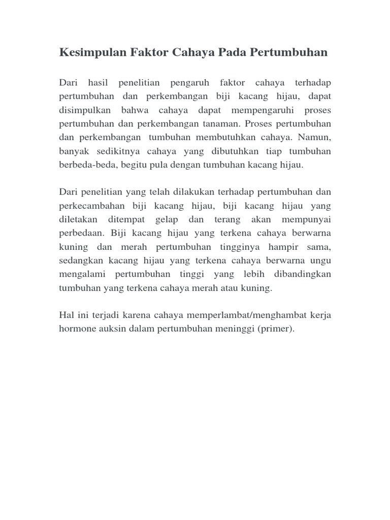 Pada hari pertama kacang hijau 1 2 3 4 dan 5 belum terjadi perubahan atau biji kacang hijau belum tumbuh. Contoh karya tulis ilmiah pengamatan perbandingan pertumbuhan tanaman hijau di tempat gelap dan di tempat terang. Kacang hijau vigna radiata l merupakan tanaman kacang kacangan ketiga yang banyak dibudidayakan setelah kedelai dan kacang tanah bila dilihat dari kesesuaian iklim dan kondisi lahan yang dimiliki indonesia termasuk salah satu negara yang memiliki kesempatan untuk melakukan ekspor kacang purwono dan hartono 2005.