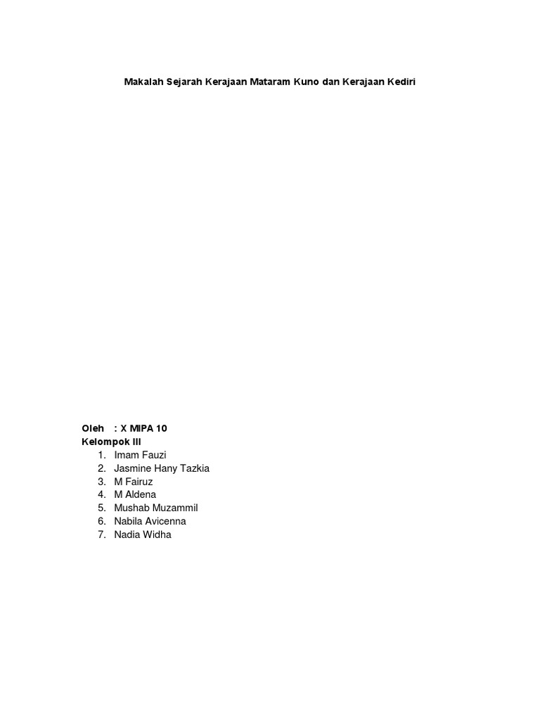 Dalam pelajaran sejarah di sd smp kita pernah belajar tentang kerajaan kerajaan hindu budha yang pernah berdiri di indonesia salah satunya adalah kerajaan kediri. Dalam penyusunanya ini kami berusaha menyusun dengan maksimal dan mendapatkan bantuan dari berbagai pihak sehingga dapat memperlancar pembuatan makalah ini. Doc makalah kerajaan mataram frency greff academia edu.