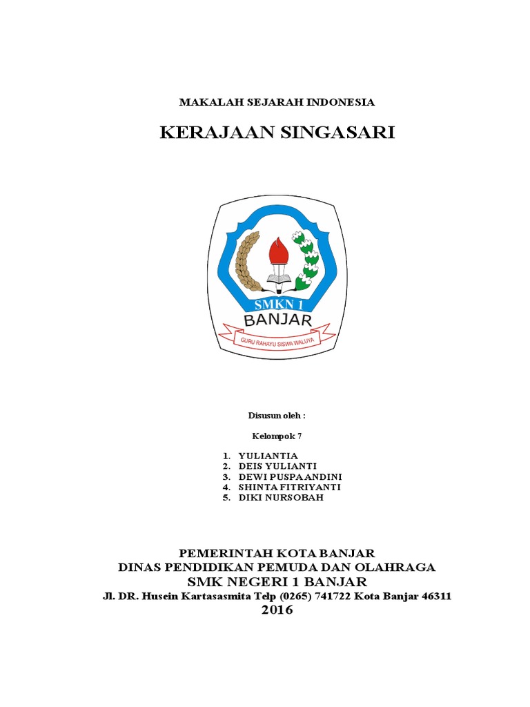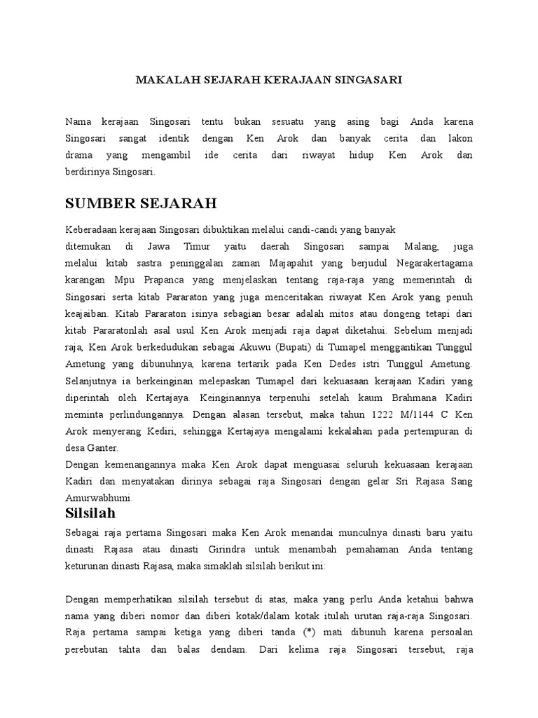 Disertai ucapan terima kasih kepada ibu fatiyah yang telah. Makalah sejarah kerajaan kediri dan singasari tuesday november 12 2019 add comment edit. Awal berdiri silsilah raja masa kejayaan dan keruntuhan serta bukti peninggalan kerajaan singasari atau sering pula ditulis singasari atau singosari adalah sebuah kerajaan di jawa timur yang didirikan oleh ken arok pada tahun 1222.
