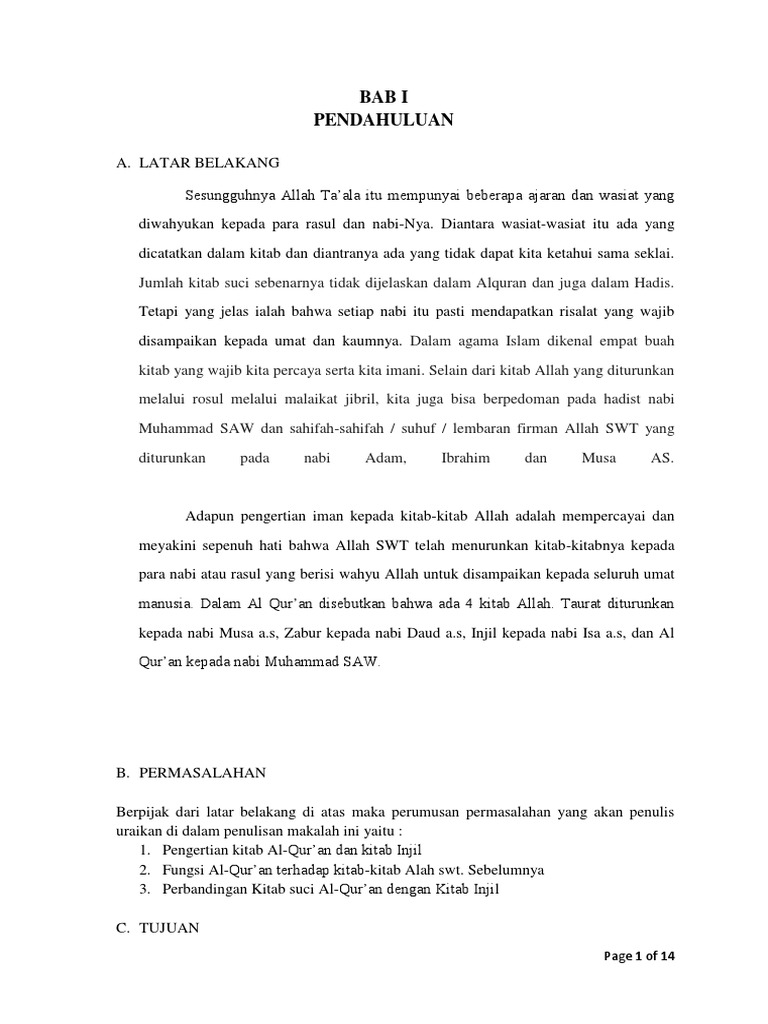 Makalah tentang kitab injil menurut islam. Menurut orang orang yahudi dan nasrani kitab zabur sekarang terdapat dalam kitab perjanjian lama mazmur dan terdiri atas 150 pasal. Demikianlah cara beriman kepada kitab injil yang orisinil turun kepada nabi isa a s. Pokok ajaran kitab zabur berisi tentang dzikir nasehat dan hikmah tidak memuat hukum hukum syari at.