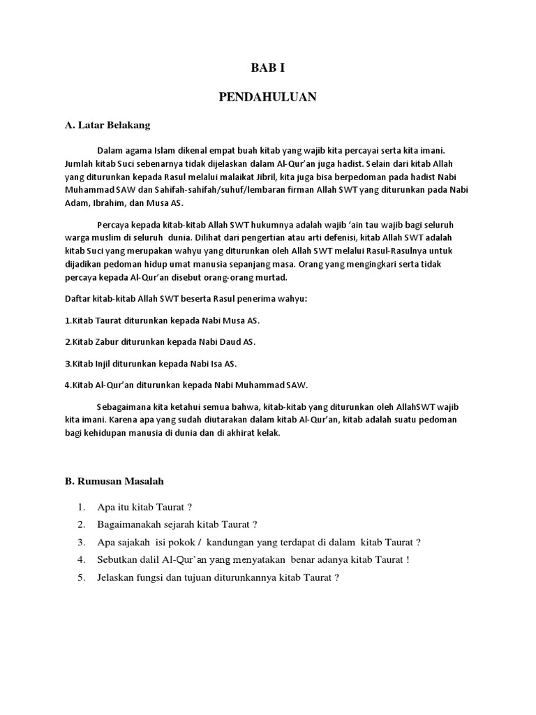 Makalah tentang kitab taurat. Ketika masih remaja nabi musa as pernah memukul seorang pemuda dari suku qibti hingga. 36 37 taurat yang diwahyukan kepada nabi musa q s. Jumat 29 juli 2016.