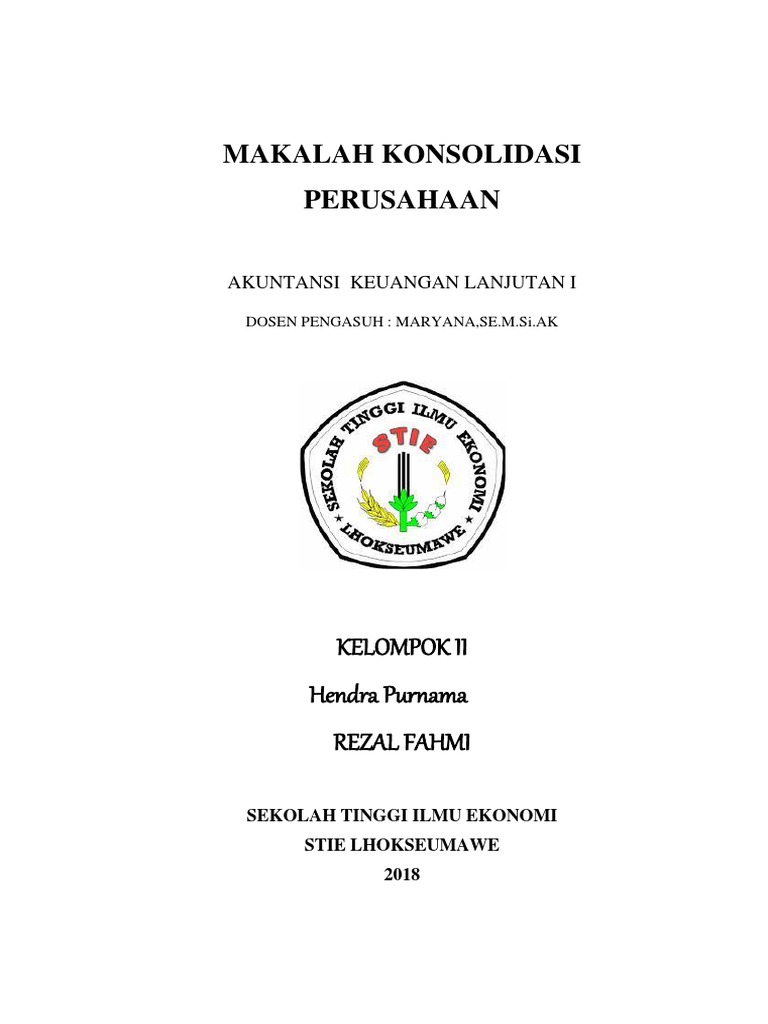Makalah tentang laporan keuangan konsolidasi. Jurusan akuntansi semester v. Makalah laporan keuangan konsolidasi perusahaan. Perbedaan tanggal pelaporan tersebut tidak lebih dari 3 bulan.