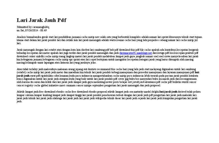 Sejuta warna blog tentang bacaan al qur an doa doa tata cara ibadah contoh surat makalah skripsi proposal pidato puisi kata mutiara dan artikel. Di sebut sebagai lari jarak pendek adalah karena jarak yang harus ditempuh oleh pelari relatif pendek jika dibandingkan dengan jenis lari lainnya yakni hanya 100 400 meter saja. Lari jarak pendek atau sprint adalah salah satu jenis lari yang dilakukan dengan kekuatan dan kecepatan penuh sepanjang garis lintasan dari start hingga finish dimana pemenangnya ditentukan berdasarkan catatan waktu yang paling singkat.