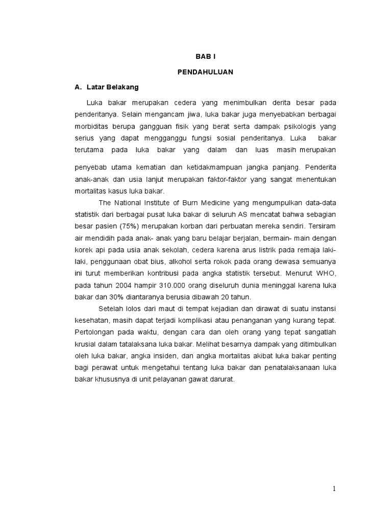 Kejadian luka bakar terjadi kurang lebih 2 5 juta orang mengalami luka bakar disetiap tahunnya di kelompok ini 200 000 pasien memerlukan penanganan rawat jalan dan 100 000 pasien dirawat di rumah sakit berdasarkan data statistik unit pelayanan khusus rsupn cipto mangunkusumo jakarta jumlah kasus yang dirawat 1998 sebanyak 107 kasus atau 26 3 dari seluruh kasus bedah plastic yang dirawat. Daftar pustaka herdman t. Definisi dan klasifikasi 2012 2014 jakarta.