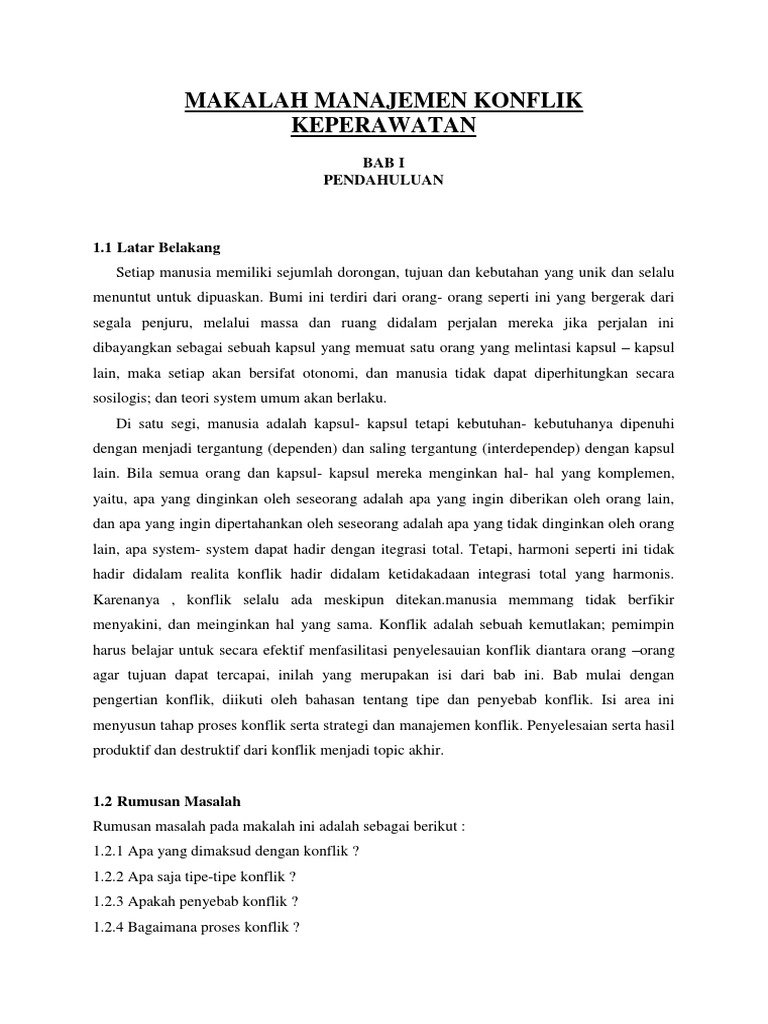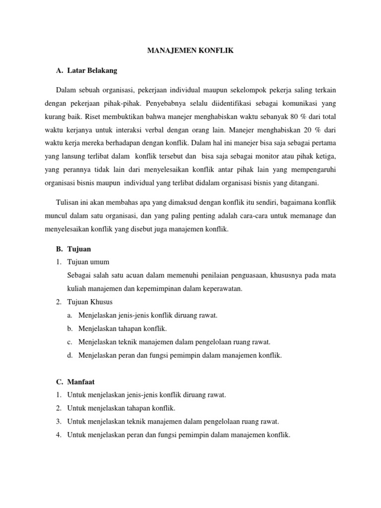 Makalah tentang manajemen konflik. Konflik merupakan kondisi yang terjadi ketika dua pihak atau lebih menganggap ada perbedaan posisi yang tidak selaras tidak cukup sumber dan tindakan salahsatu pihak menghalangi atau mencampuri atau. Tipe manajemen konflik yang satu ini membutuhkan waktu dan tenaga yang besar dalam proses penyelesaian konflik. Manajemen konflik dalam organisasi pendidikan di s u s u n oleh.