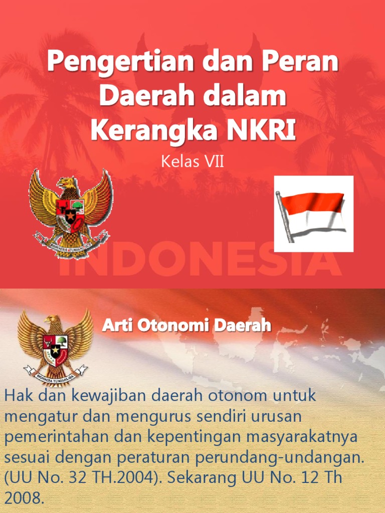 Makalah tentang otonomi daerah dalam kerangka nkri. Pasal pasal tersebut merupakan penegasan kembali mengenai bentuk negara indonesia. Peran daerah dalam kerangka nkri saat ini. Pengaturan pembagian pemanfaatan sumber daya nasional yang berkeadilan serta pertimbangan keuangan pusat dan daerah dalam kerangka negara kesatua republik indonesia.