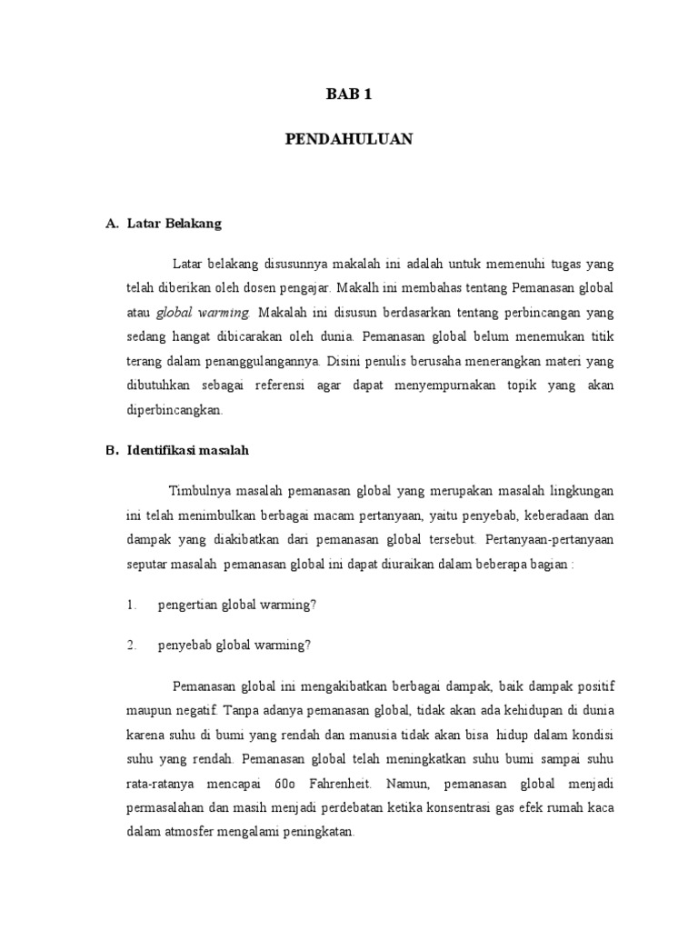 Penyebab utama terjadinya pemanasan global adalah meningkatnya konsentrasi gas gas rumah kaca akibat. Kali ini penulis akan membahas mengenai makalah yang sedang banyak dicari oleh pembaca yang masih bergelut di dunia pendidikan dan inilah salah satu contoh makalah pemanasan global yang saya buat yang lagi banyak dicari itu mudah mudahan bisa mendatangnya sebuah ide bagi anda yang sedang membutuhkan informasi mengenai point point penting yang harus ada pada. Namun ada banyak sekali dampak yang terjadi akibat pemanasan global tersebut baik itu iklim dan cuaca peningkatan air laut ekosistem dan lain lain.