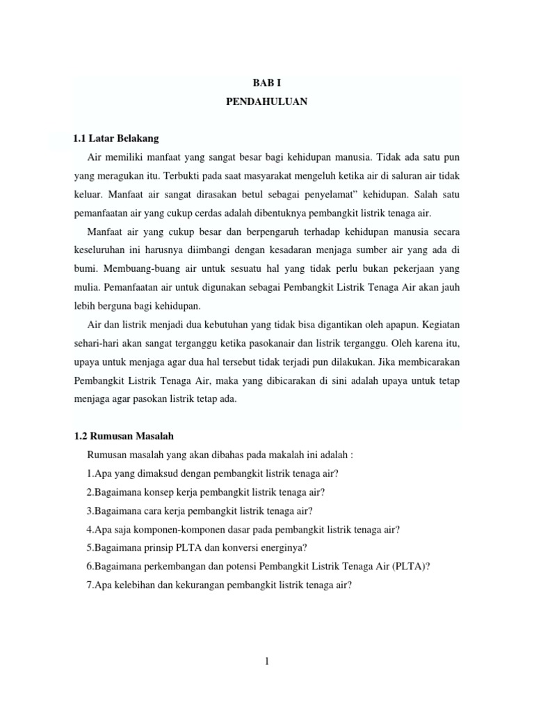 Makalah tentang pembangkit listrik tenaga air. Makalah pembangkit listrik tenaga air plta bab i pendahuluan a. Dalam pembuatan makalah ini kami menggunakan metode studi literatur yang bersumber dari referensi referensi jurnal yang bahasannya meliputi tentang pembangkit listrik tenaga air plta tidak hanya itu kamipun menggunakan metode searching melalui internet. Salah satu keunggulan dari pembangkit ini adalah responnya yang cepat sehingga sangat sesuai untuk kondisi beban.
