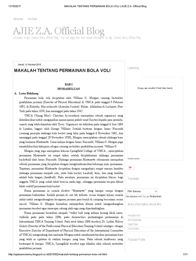 Makalah tentang permainan bola voli. Permainan bola voli pertama kali ditemukan oleh william george morgan pada tahun 1985 di holyoke massacusetts amerika serikat william george morgan adalah seorang instruktur pendidikan jasmani di sebuah organisasi bernama young men s christian association ymca. Permainan bola voli adalah salah satu olahraga dunia yang diminati banyak orang. Sepak bola adalah olahraga menggunakan bola yang dimainkan oleh dua tim yang masing masing beranggotakan 11 sebelas orang.