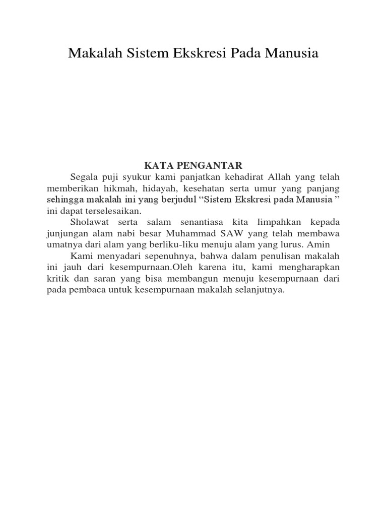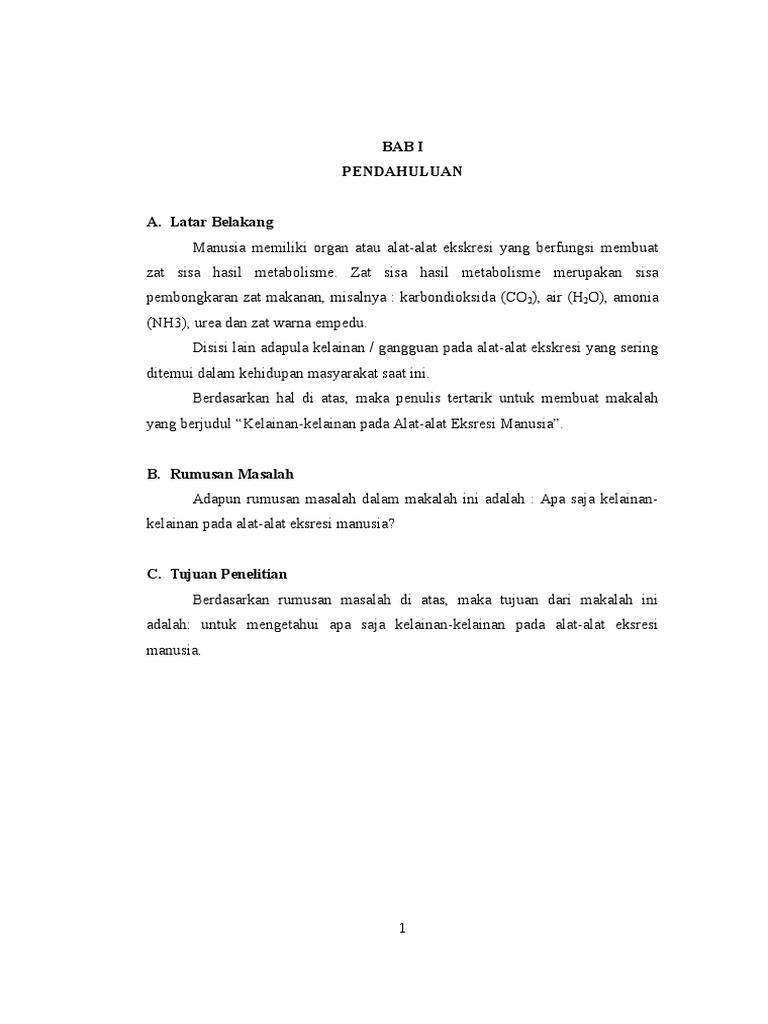Makalah ini menyajikan materi yang mudah dipahami dan dimengerti oleh peserta didik atau pembaca. Latar belakang tubuh melakukan begitu banyak proses metabolisme seperti pencernaan respirasi dan sebagainya. Makalah tentang sistem ekskresi pada manusia bab i pendahuluan a.