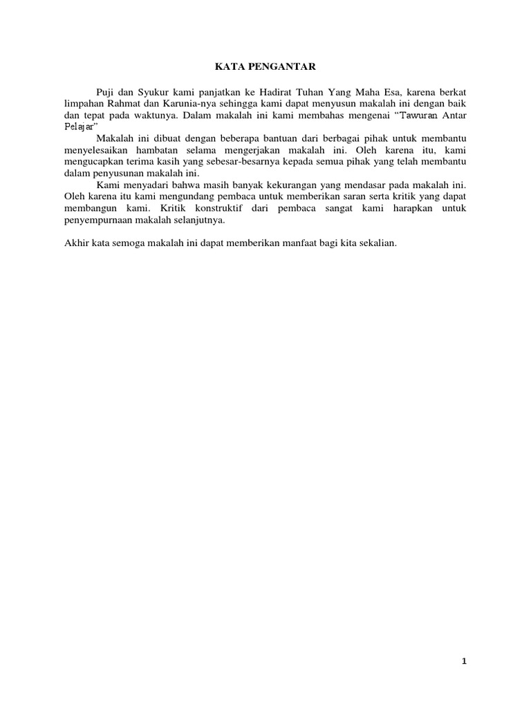 Makalah tentang tawuran pelajarkata pengantar puji syukur kita panjatkan kepada tuhan yang maha esa atas kehadirat nya yang telah memberikan rahmat dan kasih sayang nya kepada saya sehingga makalah ini dapat saya selesaikan dengan baik dan tepat pada waktunya.