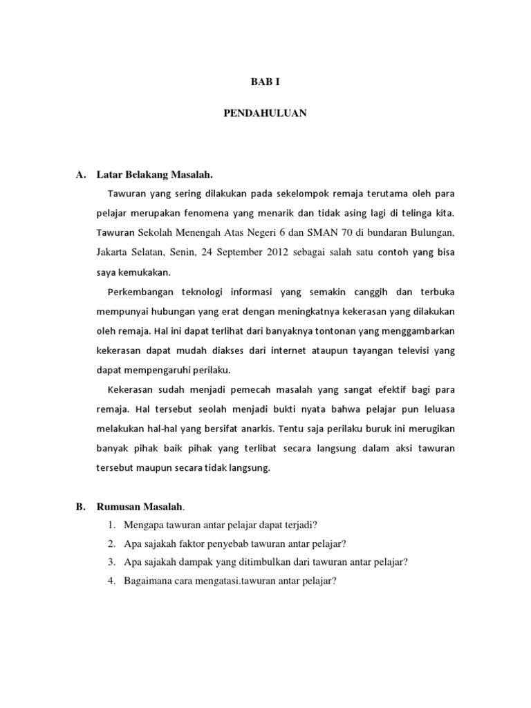 Makalah tentang tawuran antar pelajar bab i pendahuluan 1. Kekerasan sudah dianggap sebagai pemecah masalah yang sangat efektif yang dilakukan oleh para remaja. Makalah merebaknya tawuran antar pelajar disekolah karena kurangnya pengawasan.
