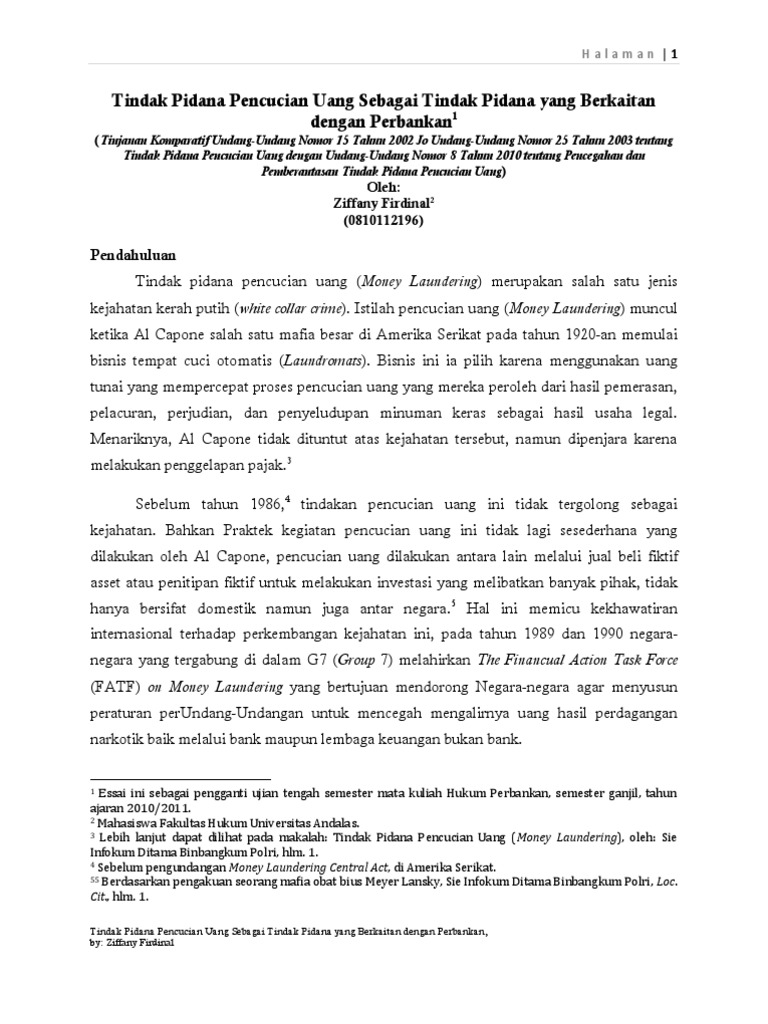 Makalah tindak pidana pencucian uang. Doc peran polri dalam cegah dan berantas tppu agung setya academia edu dosen pengampu sukartono damar ritonga makalah itemprop url baca selengkapnya a. Program studi ilmu hukum. Makalah kasus pencucian uang pdf.