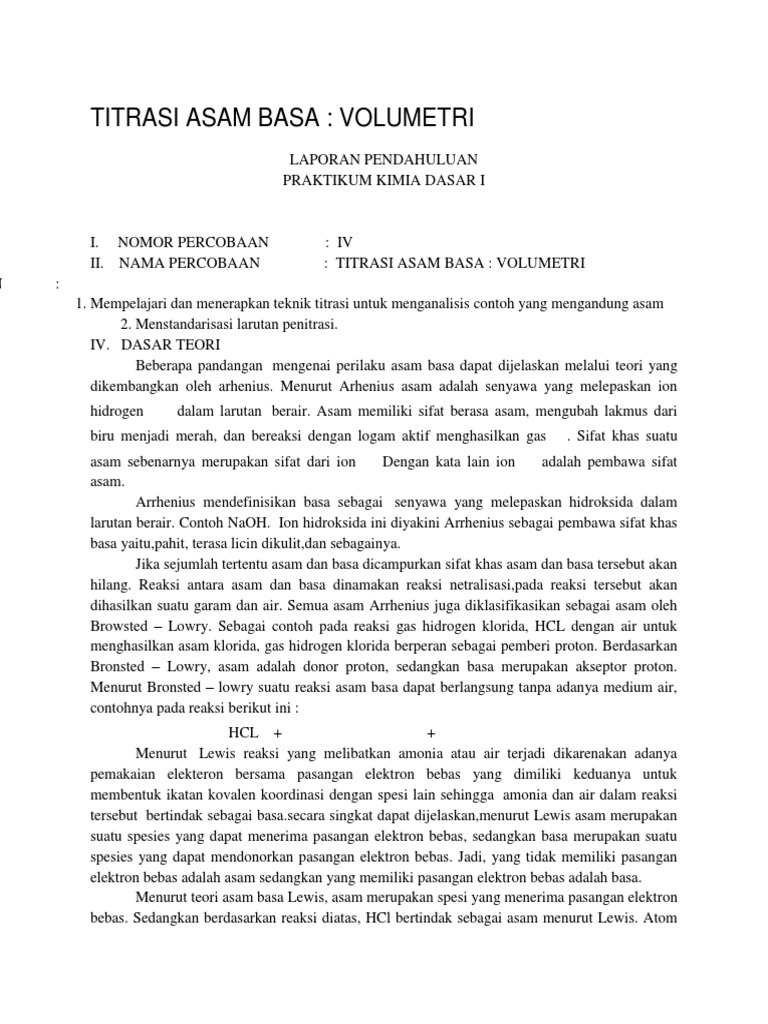 Makalah titrasi asam basa. Makalah asam basa makalah teori asam basa materi asam basa kelas 11 kurikulum 2013 materi asam basa kelas 11. Titrasi biasanya dibedakan berdasarkan jenis reaksi yang terlibat di dalam proses titrasi sebagai contoh bila melibatkan reaksi asam basa maka disebut sebagai titrasi asam basa titrasi redox untuk titrasi yang melibatkan reaksi reduksi oksidasi titrasi. Titrasi asam basa.