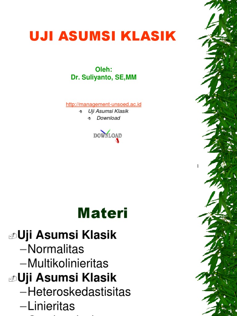 Makalah uji asumsi klasik. Pada akhir bagian buku dilengkapi dengan satu latihan sederhana. Uji asumsi klasik multikolinieritas ini digunakan untuk mengukur tingkat asosiasi keeratan hubungan pengaruh antar variabel bebas tersebut melalui besaran koefisien korelasi r. Uji asumsi klasik model regresi linier klasik ols berlkitaskan serangkaian asumsi.