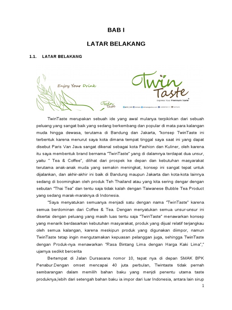 Makalah usaha thai tea. Usaha ini dipilih karena untuk memulai bisnis sebagai pemula dinilai tidak terlalu sulit dan modal yang disiapkan pun tidak terlalu besar. Abstrak king thai tea adalah salah satu dari usaha industri minuman jenis thai tea. Thai tea adalah salah satu teh dari thailand yang menawarkan citarasa yang unik dan berbeda dari teh pada umumnya.