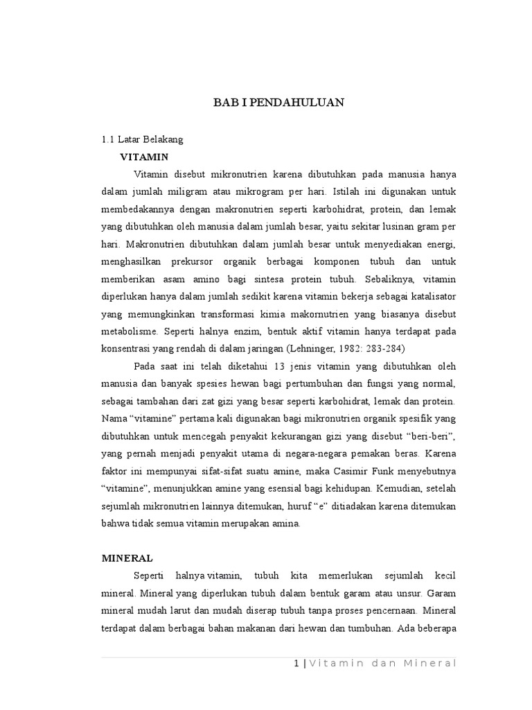 Makalah vitamin dan mineral. Alhamdulillah puji syukur kehadirat allah swt. Zat zat tersebut berperan penting dalam proses proses kimia dalam tubuh dan berpengaruh dalam mempertahankan fungsi tubuh karena vitamin dan mineral merupakan faktor yang berdampak besar terhadap berjalannya fungsi fisiologi tubuh dan umumnya kekurangan kelebihan ataupun kesalahan penggunaan.