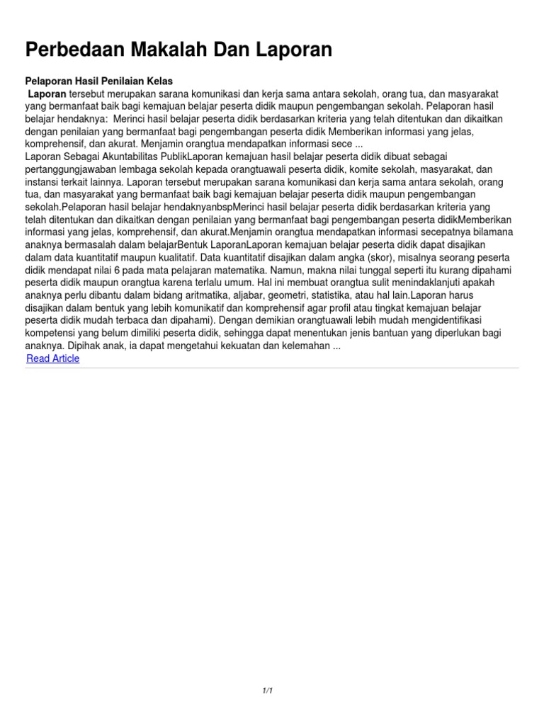 Perbedaan makalah dan laporan. Pelaporan hasil penilaian kelas laporan tersebut merupakan sarana komunikasi dan kerja sama antara sekolah orang tua dan masyarakat yang bermanfaat baik bagi kemajuan belajar peserta didik maupun pengembangan sekolah. Perbedaan artikel makalah dan laporan penelitian. Nah maka dari itu saya di sini mau berbagi pengalaman seputar makalah dan laporan nih.
